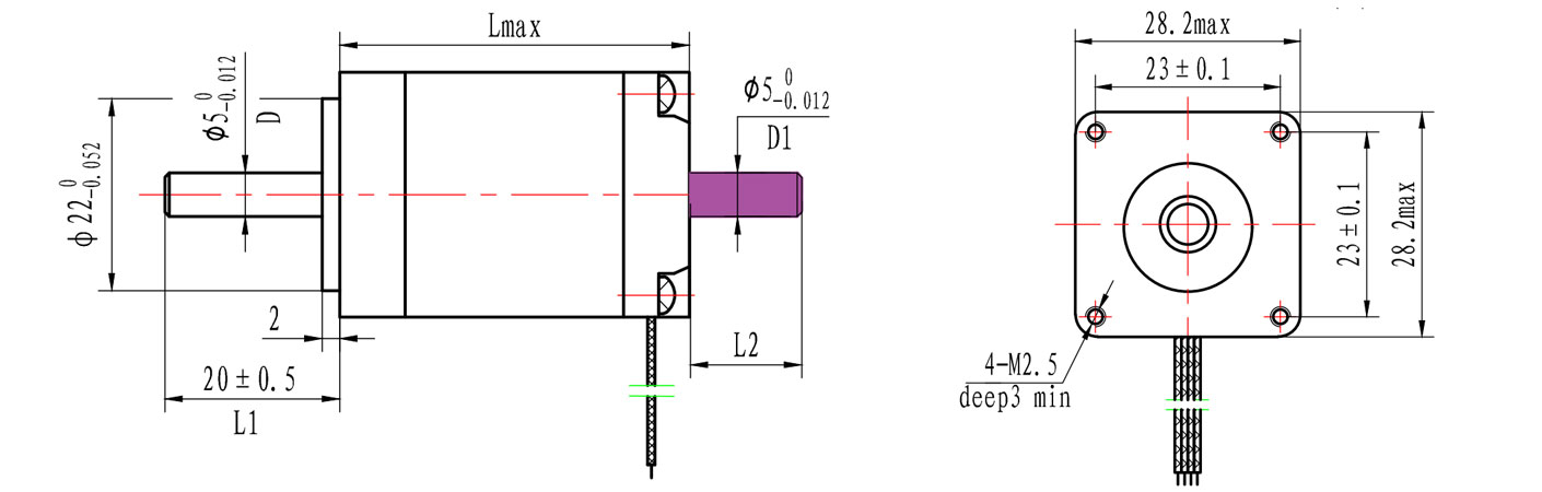 | 说明 | 电机机身长度,标准长度见技术参数 | 电机前出轴长度,建议长度上限50mm | 电机后出轴长度,建议长度上限30mm | 电机前后出轴轴径范围 ф3mm-ф7mm |