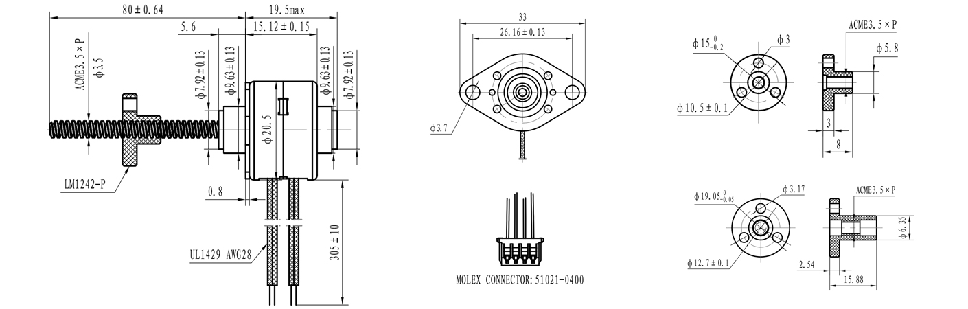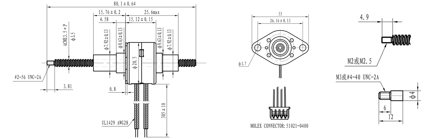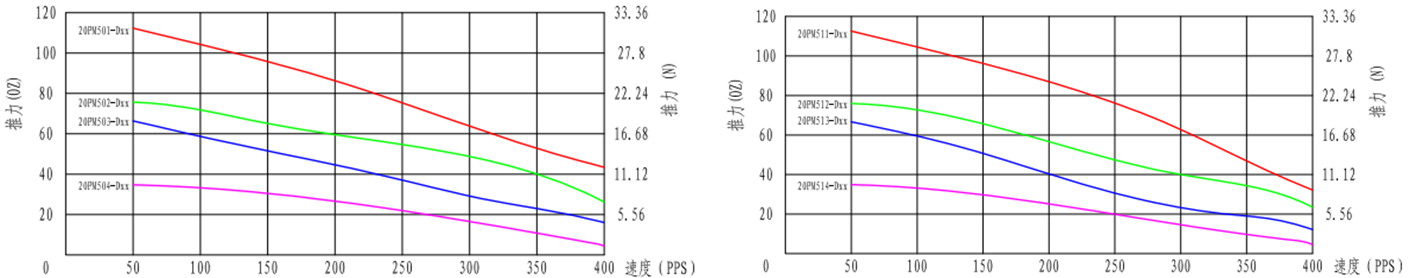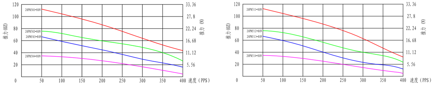 | 电机型号 | 电压 V | 电流 mA | 导程 mm | 步长 mm | Thrust 推力@100pps,整步 | 电阻 Ω | 电感 mH |